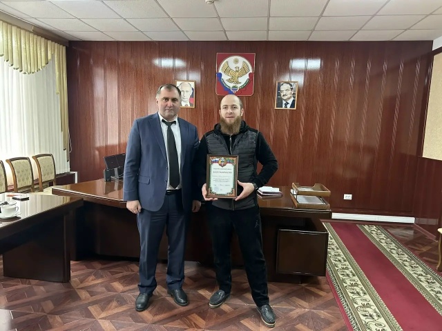 Сегодня, 13 января, в администрации Хивского района состоялась встреча главы муниципалитета Ярмета Ярметова с участником СВО Алибегом Рамазановым.